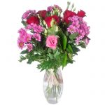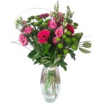 - Bukiet składający się z 3-4 róż, 1-2 margaretek, 3-4 eustom gałązkowych, 6 goździków oraz sezonowych dodatków dekoracyjnych,